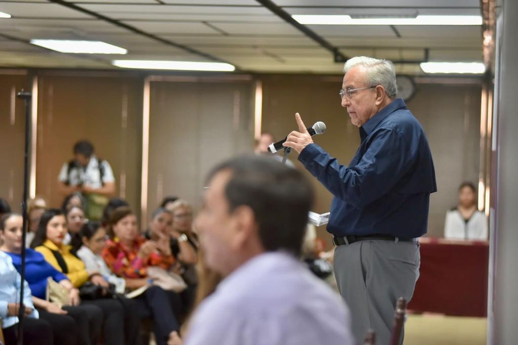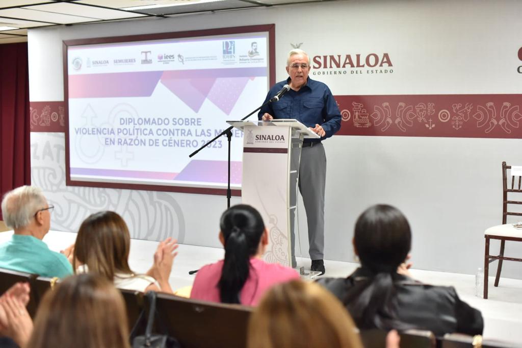 Culiacán, Sinaloa, octubre del 2023.- El gobernador Rubén Rocha Moya acompañado por la secretaria de las Mujeres María Teresa Guerra Ochoa y por el Director General de Difusión y Publicaciones del Instituto Belisario Domínguez, Juan Manuel Verdugo, inauguró el Diplomado Sobre Violencia Política contra las Mujeres en donde destacó que la lucha de las mujeres es un tema de derechos y de principios.