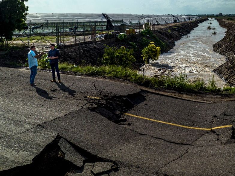 Primero acudió el funcionario estatal con el primer equipo, al puente dañado en la carretera Villa Juárez-La Michoacana en Navolato para luego trasladarse a la carretera entre La Pipima y El Potrero donde lo acompañó la presidenta municipal, Margoth Urrea, además de funcionarios estatales y municipales.