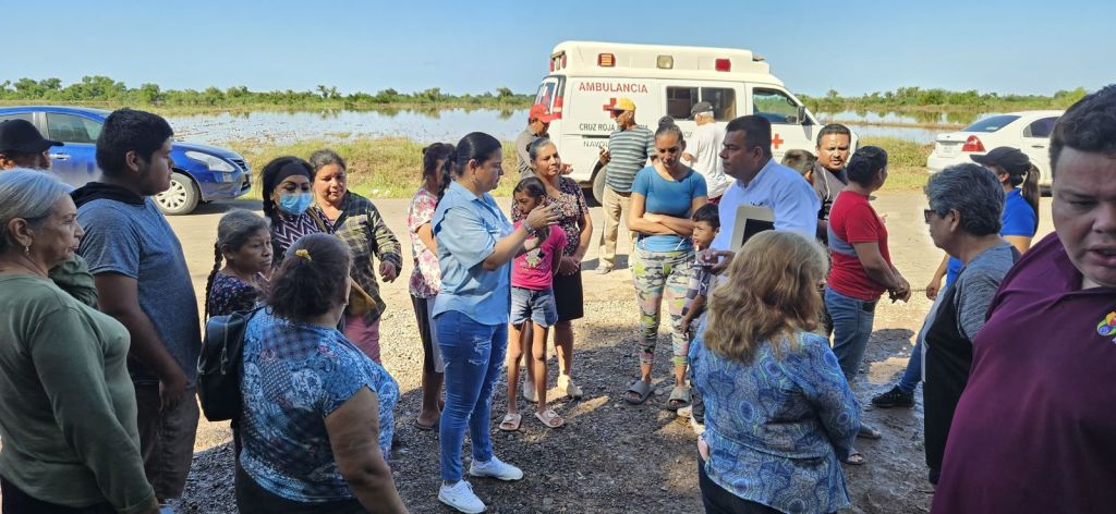 La Presidenta Municipal de Navolato, Margoth Urrea Pérez, visitó a las familias afectadas de la comunidad Cañadas de Guamuchilito, sindicatura de Villa Ángel Flores “La Palma”, donde se entregaron algunos apoyos como despensas y ropa.