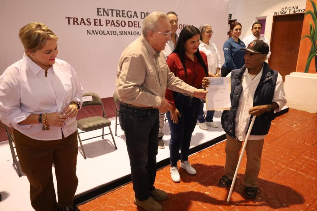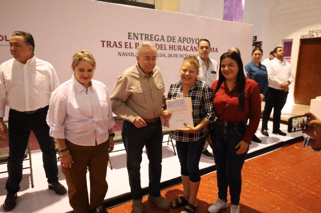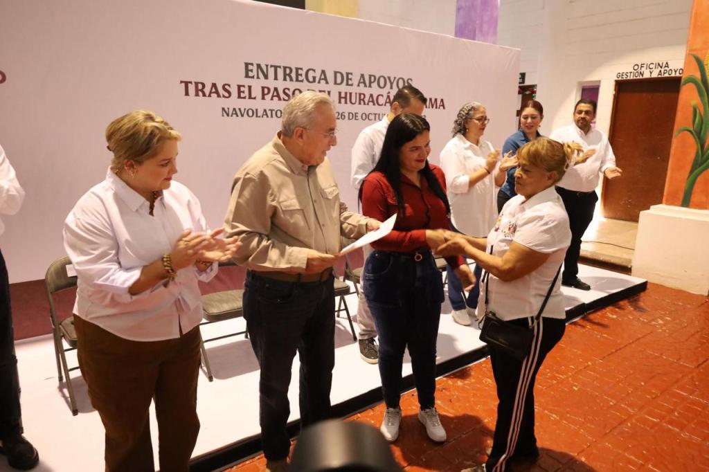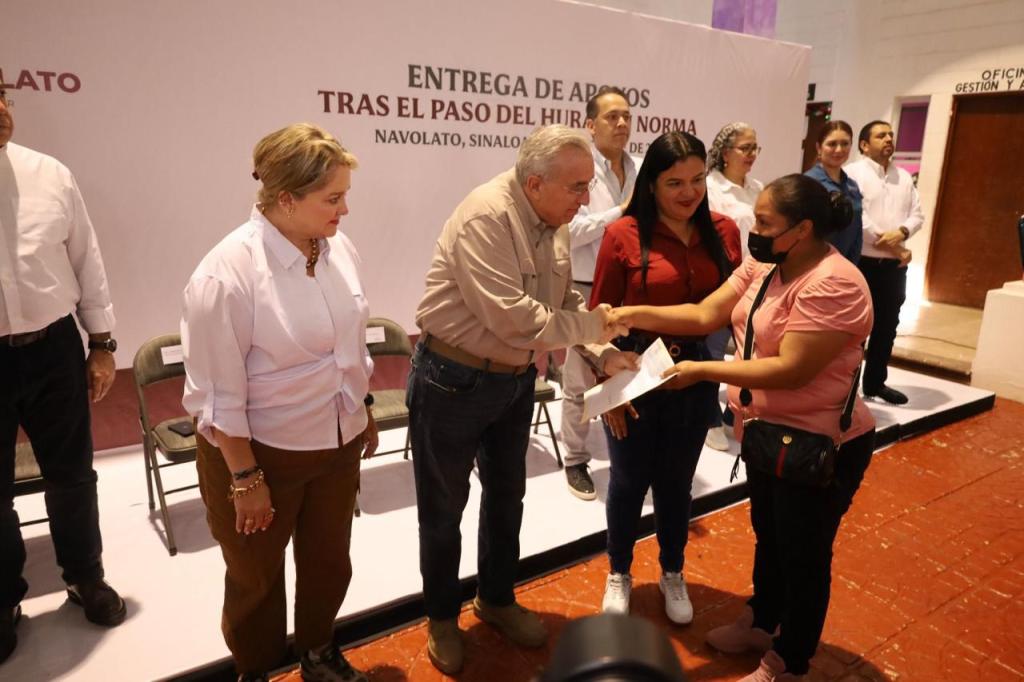 El mandatario estatal aclaró que todas las familias de Navolato afectadas por las lluvias recibirán un apoyo económico, a lo que la alcaldesa agradeció a nombre del pueblo navolatense.