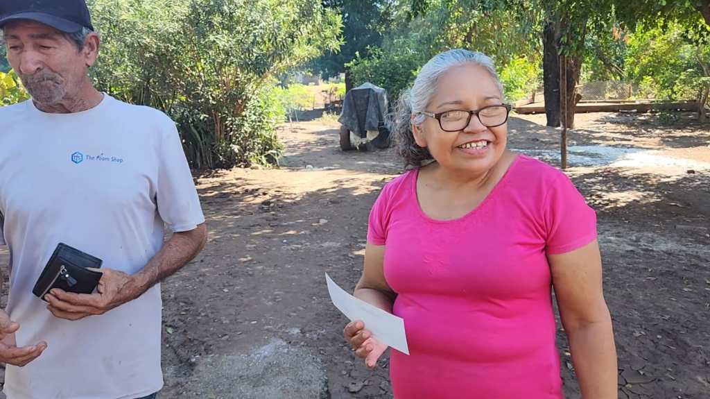 “Mi nombre es Nora Lucía Zazueta Toquillas somos del Ejido de El Pinole con la problemática de las inundaciones por falta de desazolve del canal, este cheque lo voy a utilizar para comprar unos colchones”.