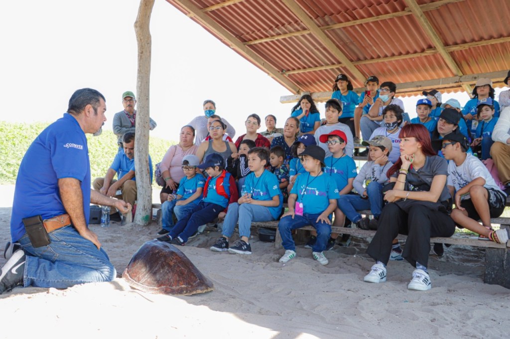 Ceuta, Elota, Sinaloa, octubre de 2023. Con el propósito de estimular, potenciar e impulsar el talento científico, así como fomentar la cultura ecológica, CONFÍE a través del Centro de Ciencias de Sinaloa ofreció a 30 niñas y niños integrantes del programa Talentos una excursión al Campamento Tortuguero de Playa Ceuta.