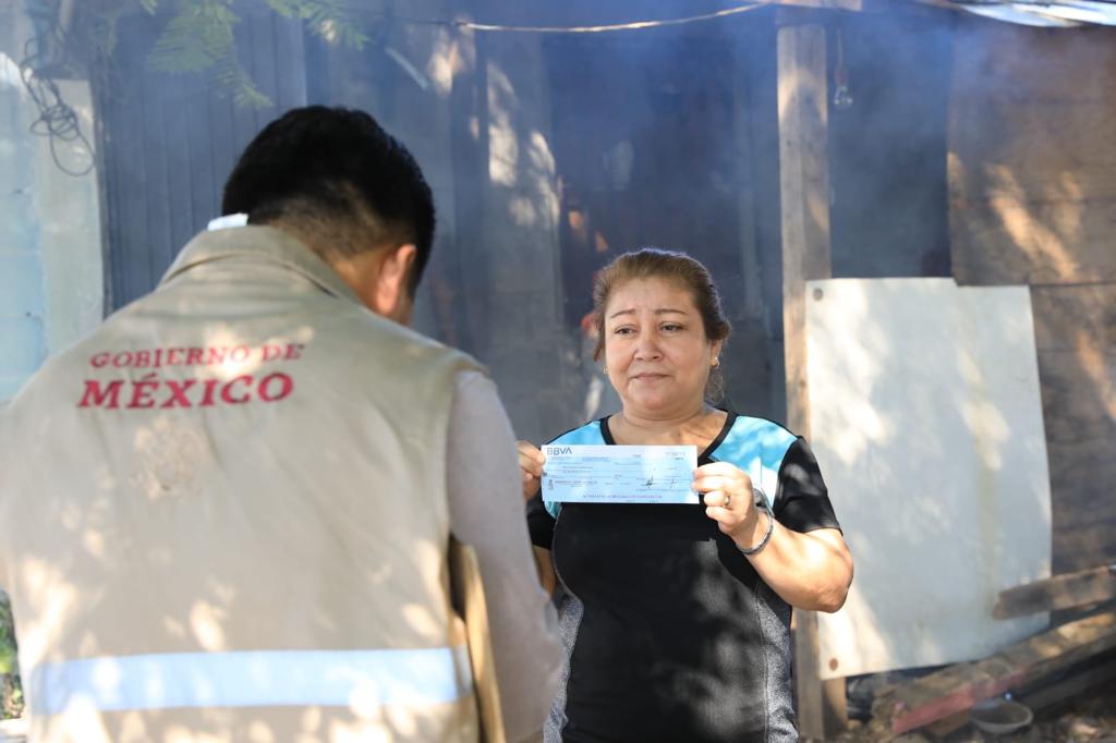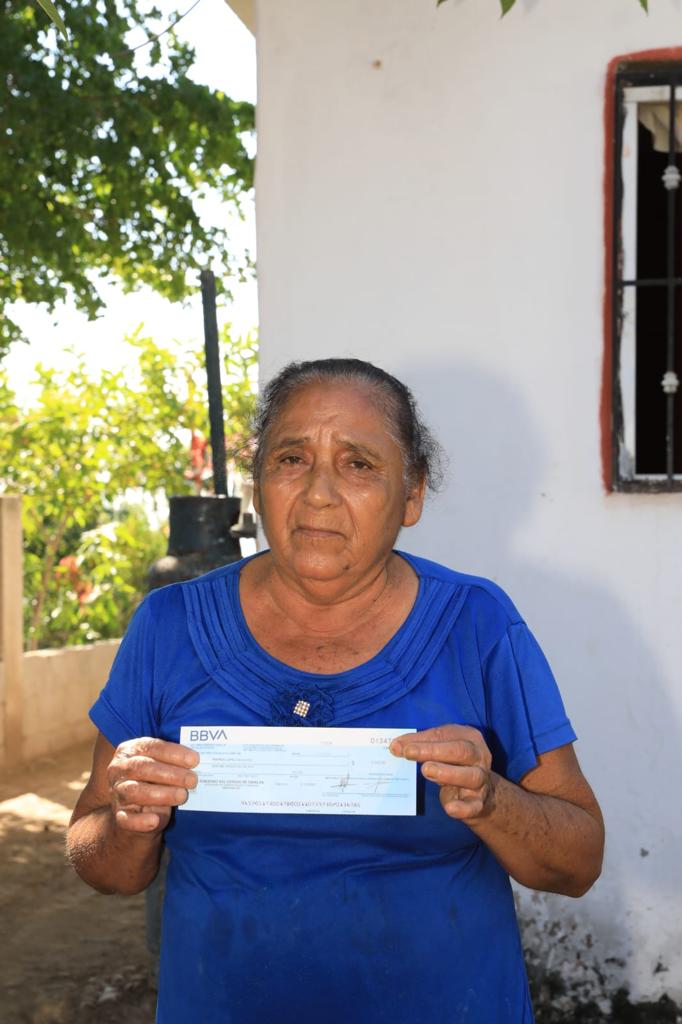 María Fernanda, una de las personas afectadas qué recibió esta mañana su cheque por 6 mil pesos, señaló que gracias a esta ayuda podrá dejar de cocinar con leña, ya que las lluvias le dañaron gran parte de sus enseres domésticos.