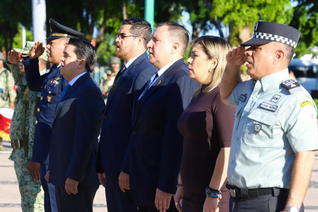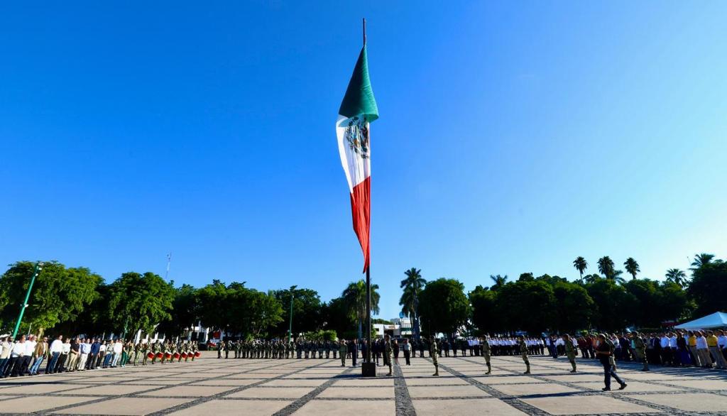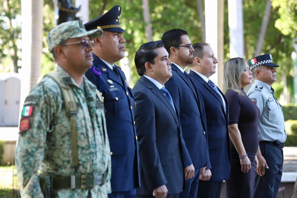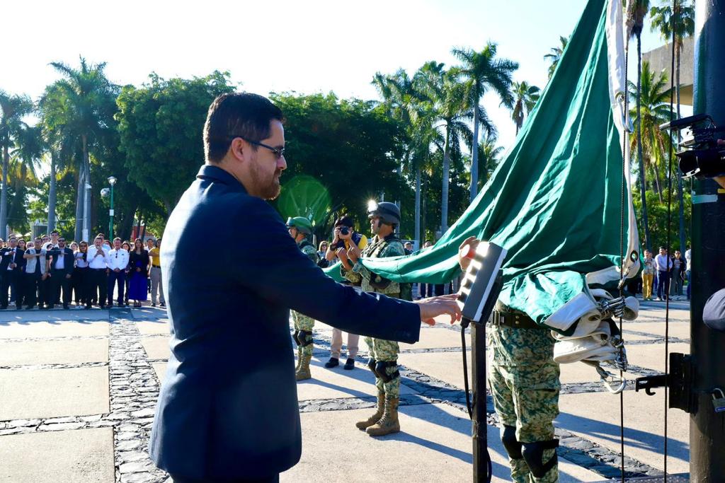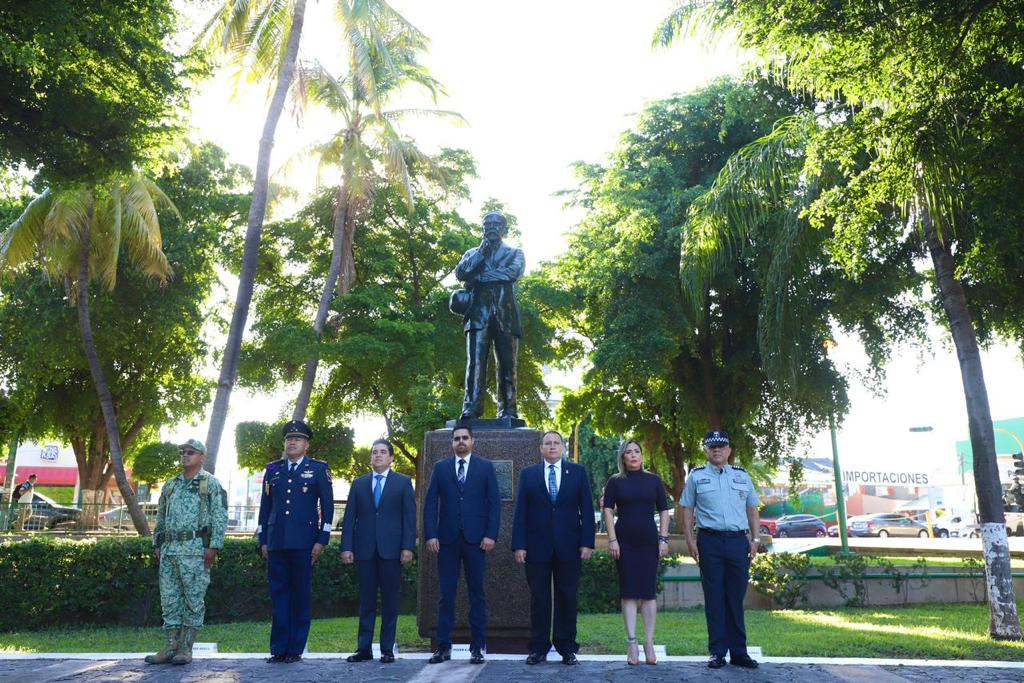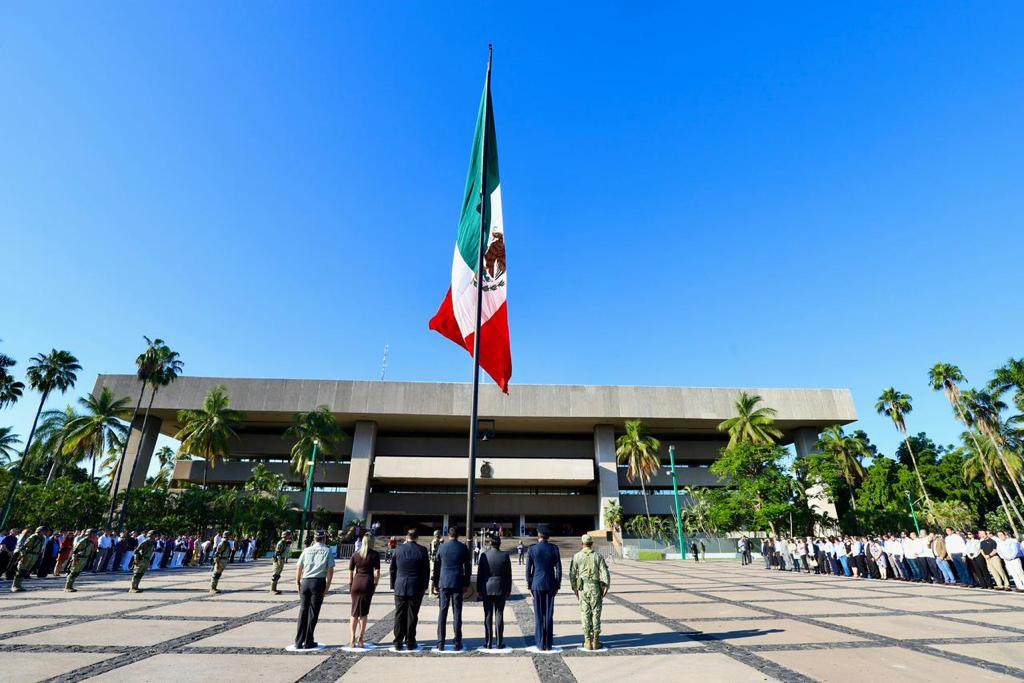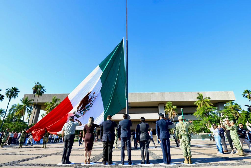 Culiacán, Sinaloa, octubre de 2023.-* Conmemorando el 150 aniversario del natalicio de quien sentó las bases del estado moderno mexicano, este lunes se izó bandera a toda asta en la explanada de Palacio de Gobierno con motivo del nacimiento de Don Francisco I. Madero.