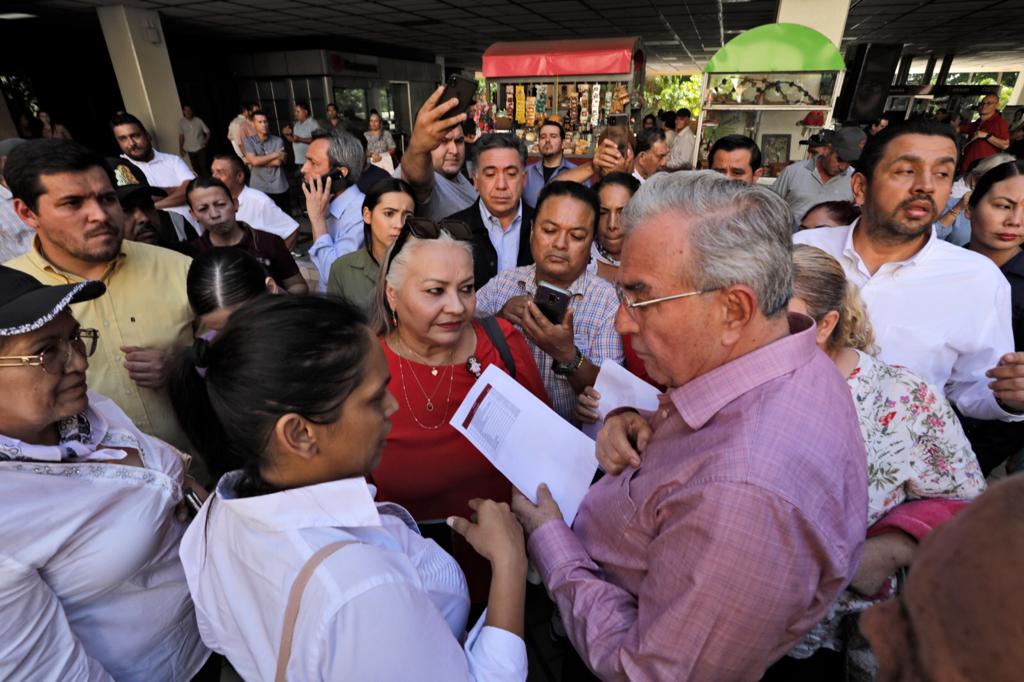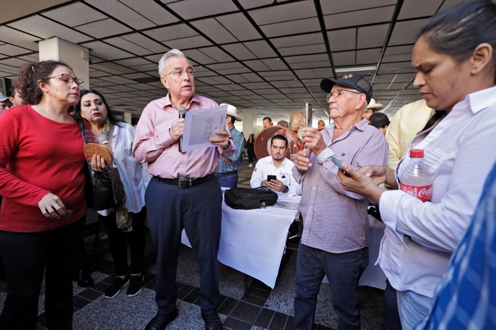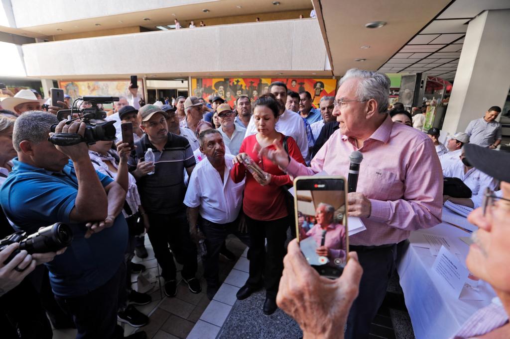 Culiacán, Sinaloa, a Octubre de 2023.- Con una lista de los productores pendientes de pago en la mano, el Gobernador Rubén Rocha Moya se reunió este lunes por segunda ocasión con los productores agrícolas que se manifestaron en el patio central de Palacio de Gobierno, para solicitar el pago de sus cosechas de maíz, a quienes les reiteró su compromiso de pagar en menos de 24 horas a quienes ya tengan completa su documentación, adelantando que en algunos casos los pagos se verían reflejados a partir de hoy.