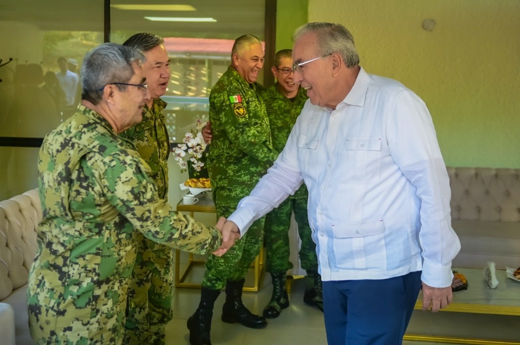 El gobernador Rocha asistió acompañado por el secretario de Seguridad Pública, el general retirado, Gerardo Mérida Sánchez; y por la fiscal general del Estado, Sara Bruna Quiñones Estrada.