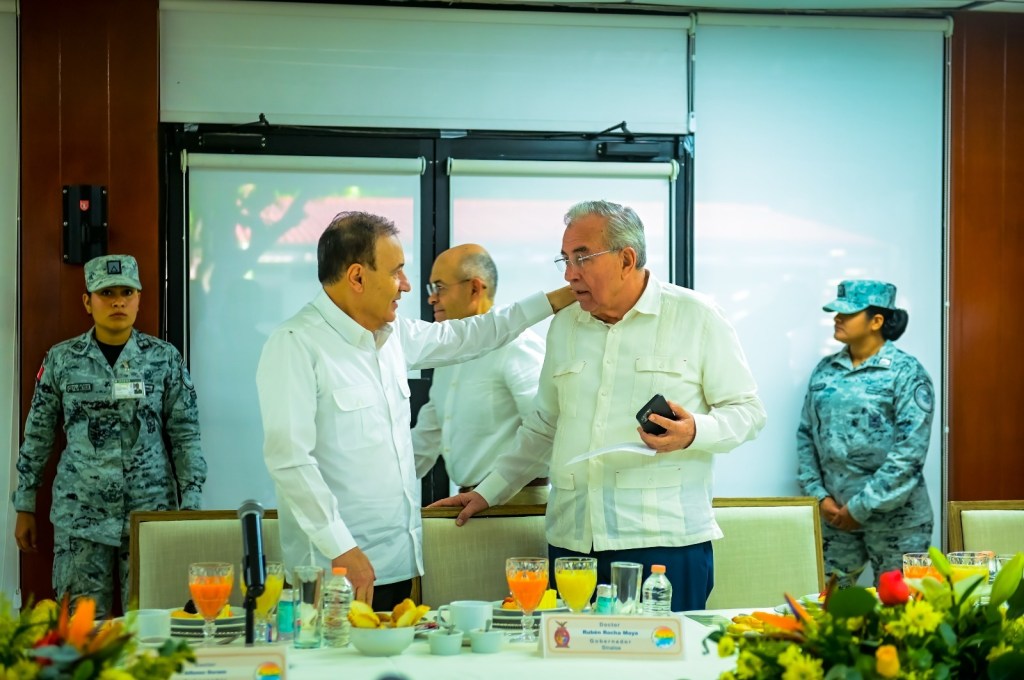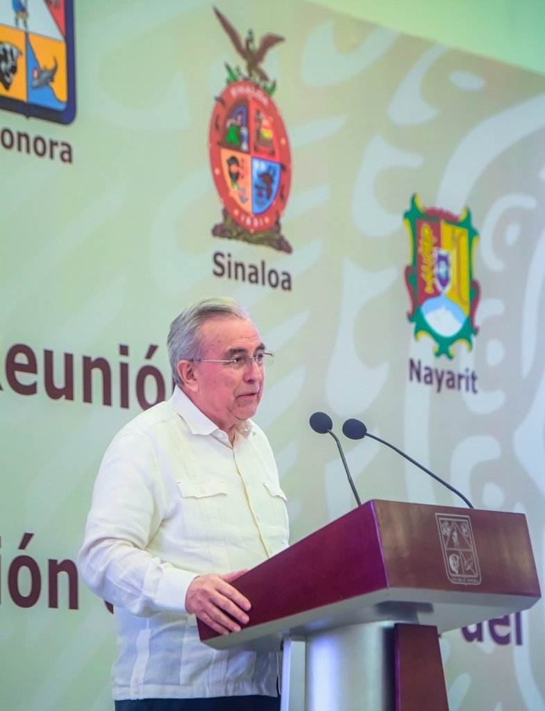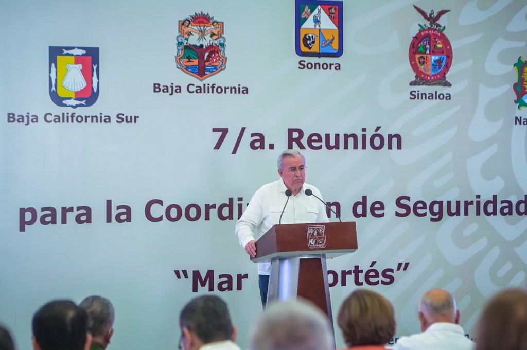 Hermosillo, Sonora, a noviembre de 2023.- Al participar en la Séptima Reunión Regional de Seguridad Mar de Cortés, el gobernador Rubén Rocha Moya destacó la buena colaboración y coordinación que existe entre los gobiernos de estos cinco estados que conforman esta región, y dijo que el ejemplo más reciente fue la detención en Navojoa, Sonora, en menos de 48 horas, del sujeto acusado de asesinar a sus dos pequeñas hijas, a su suegra y herir de gravedad a su mujer y a una hijastra, en la colonia Villas de Cortés en la ciudad de Los Mochis, hace apenas unas semanas, y que huyó al vecino estado para evadir la acción de la justicia.