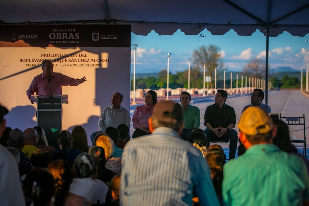 Culiacán, Sinaloa, noviembre del 2023.- El gobernador Rubén Rocha Moya acompañado por el secretario de Obras Públicas Joaquín Landeros Guicho y el alcalde municipal Juan de Dios Gámez Mendívil, inauguró de manera oficial la prolongación del Boulevard Enrique Sánchez Alonso. Con una inversión total de $128,684,033.20, este proyecto representa un importante avance en el desarrollo de la infraestructura vial de Culiacán.