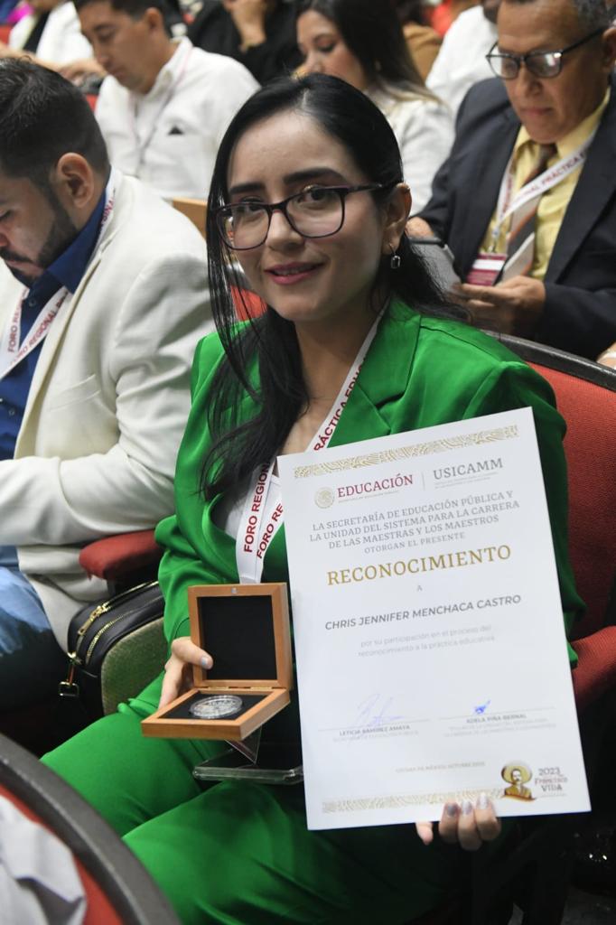 A nombre de las y los docentes galardonados, el profesor de Educación Indígena, Christian Yovani Castro, señaló que en esta ocasión, en la Convocatoria emitida por USICAMM se consideró “la Educación a Pueblos y Comunidades Indígenas, afroamericanas, migrantes y jornaleros agrícolas, considerando una oportunidad para el sistema indígena, ya que la preservación de una lengua originaria implica un gran reto para quienes habitamos en una etnia. Como maestro de una escuela primaria indígena y orgullosamente perteneciente a la cultura yoreme-mayo del norte de Sinaloa, es una gran oportunidad de mantener vivas todas las formas de expresión, costumbres y tradiciones indígenas”.