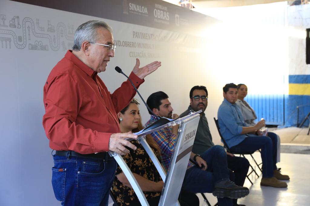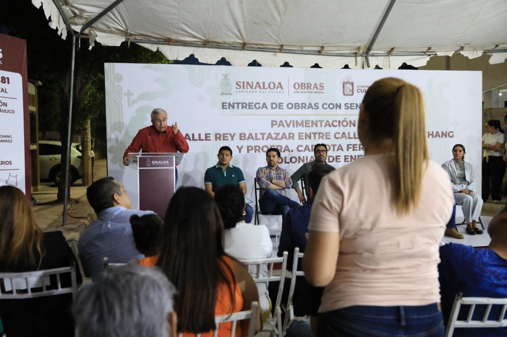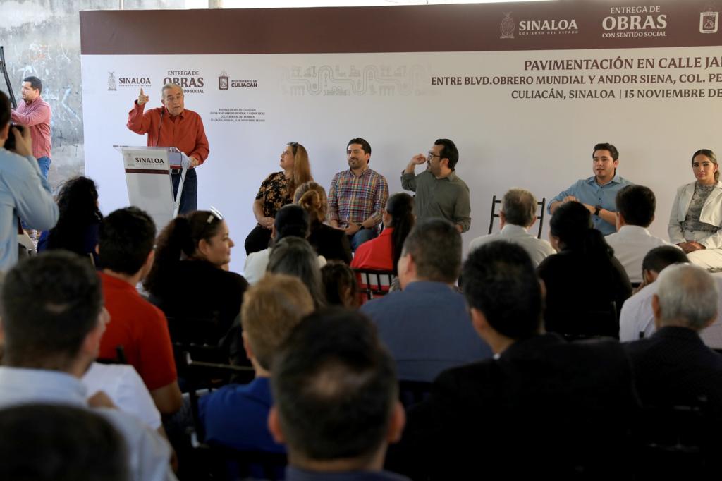 «En este año que estamos cerrando, llevamos más de 350 calles solo en la ciudad de Culiacán y también estamos pavimentando en las sindicaturas, porque ahí en las sindicaturas vive gente igual que ustedes, quieren también que no se les enloden los zapatos cuando van a entrar a su casa», señaló el Gobernador.