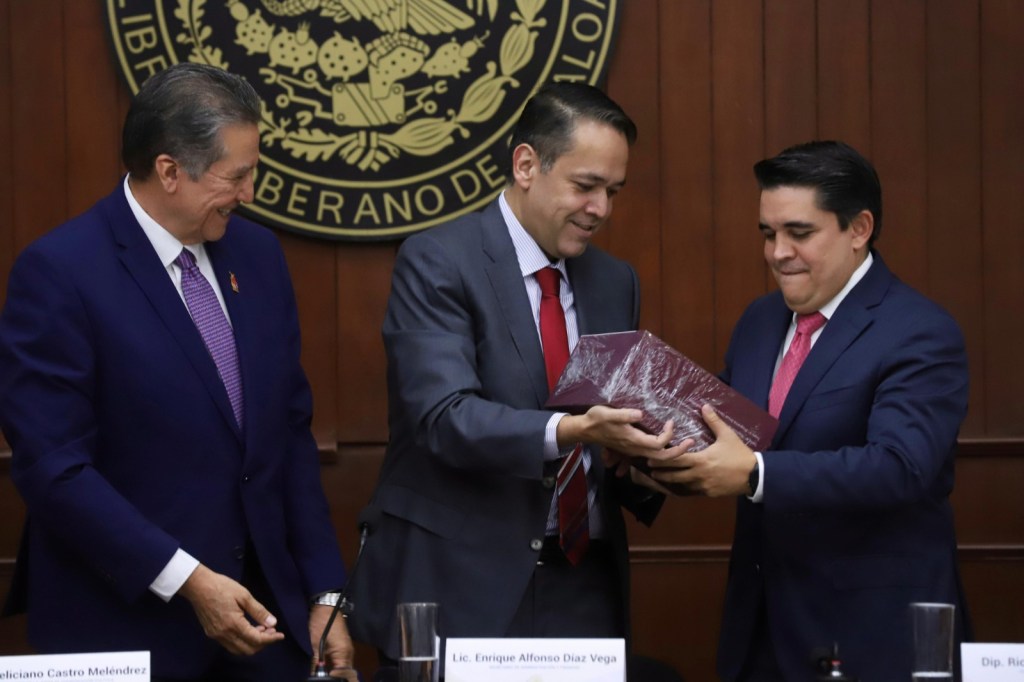 El secretario de Administración y Finanzas, Enrique Díaz Vega, entregó a la LXIV Legislatura la iniciativa de Ley de Ingresos y Presupuesto de Egresos 2024, que propone la aplicación de 69 mil 596 millones de pesos.