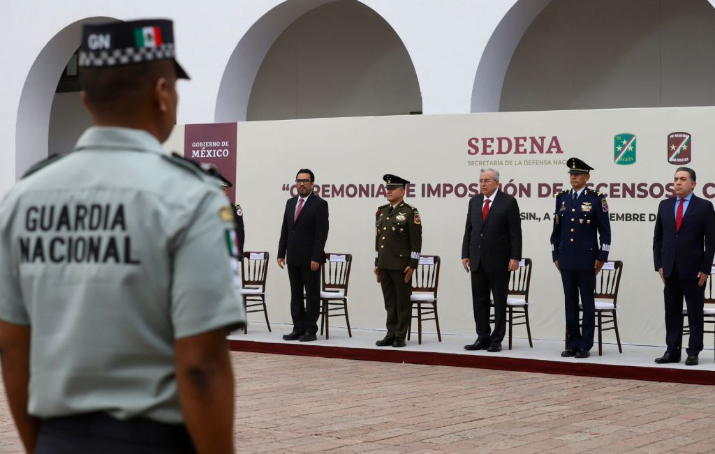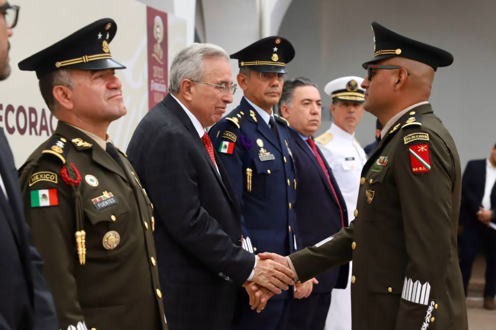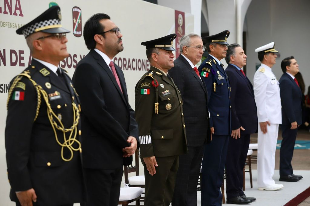 Esta importante imposición de insignias fue encabezada por el General de Brigada Diplomado de Estado Mayor, Porfirio Fuentes Vélez, Vicealmirante Daniel Escobedo Escobedo, Comandante de la Octava Zona Naval, General Brigadier D.E.M. Fructuoso López Vallejo, Coordinador Estatal de la Guardia Nacional en Sinaloa, Gerardo Mérida Sánchez, Secretario de Seguridad Pública Estatal, Enrique Inzunza Cázarez, Secretario General de Gobierno, Ricardo Madrid Pérez, Presidente de la Mesa Directiva del Congreso y Jesús Iván Chávez Rangel, Magistrado Presidente del Supremo Tribunal de Justicia.