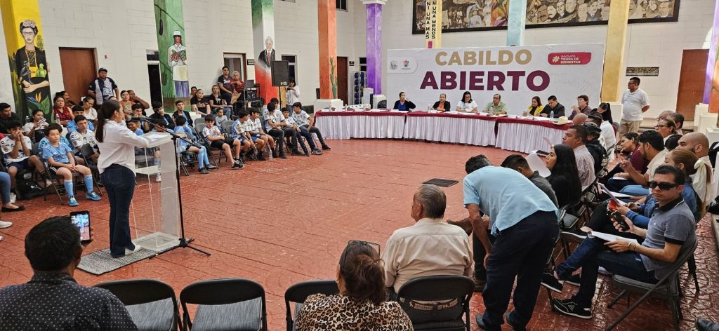 La Presidenta Municipal de Navolato, Margoth Urrea Pérez, encabezó este sábado por la mañana una sesión de Cabildo Abierto en el patio del Ayuntamiento, a la que asistieron navolatenses de la cabecera municipal y las sindicaturas para hacer diversas peticiones.