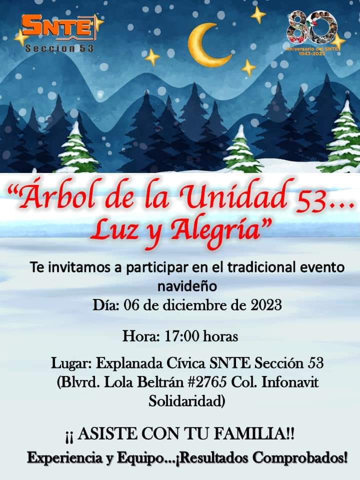 Asiste con tu familia al tradicional evento Navideño y encendido del “Árbol de la Unidad 53… Luz y Alegría”.