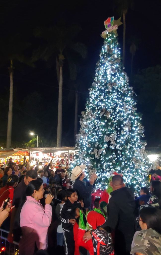 Navolato, Sinaloa, a diciembre de 2023*.- Por segunda ocasión la Presidenta Municipal de Navolato, Margoth Urrea Pérez, encabezó con gran éxito el encendido del árbol navideño y la inauguración de la colecta de juguetes Villa del Bienestar, además en esta ocasión se agregó por primera vez en la historia de Navolato, la Villa Navideña que luce decorada con los colores tradicionales de la Navidad en el kiosco Conrado Solís y parte de la plazuela Vicente Guerrero, a lo que las familias navolatenses respondieron con gran alegría al señalar que luce muy bonito.