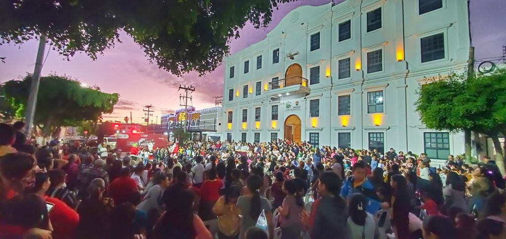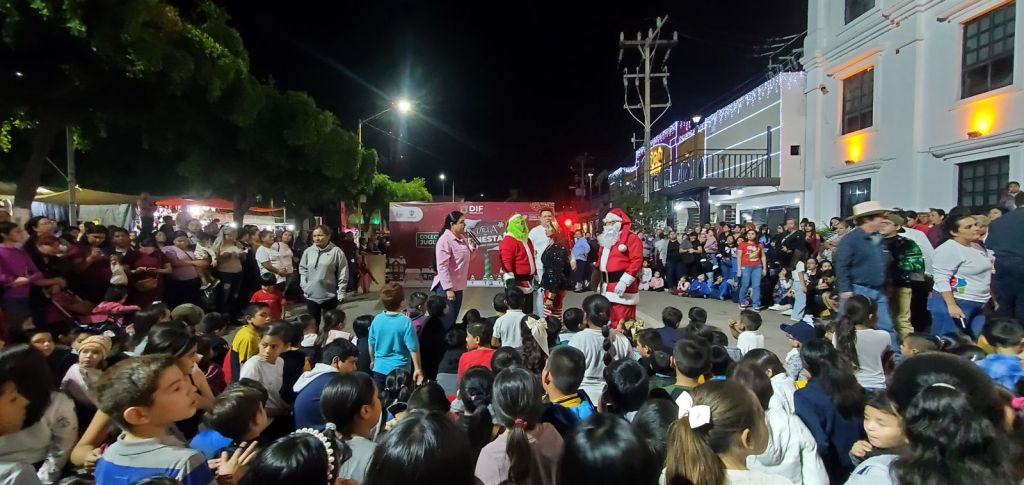 Posteriormente Urrea Pérez encabezó un recorrido con niñas y niños, para llevarlos a inaugurar la Villa Navideña de la plazuela, donde se decoró el kiosco con un Santa Claus y un sillón para que las y los navolatenses y turistas puedan tomarse fotografías en esta gran Villa del Bienestar.