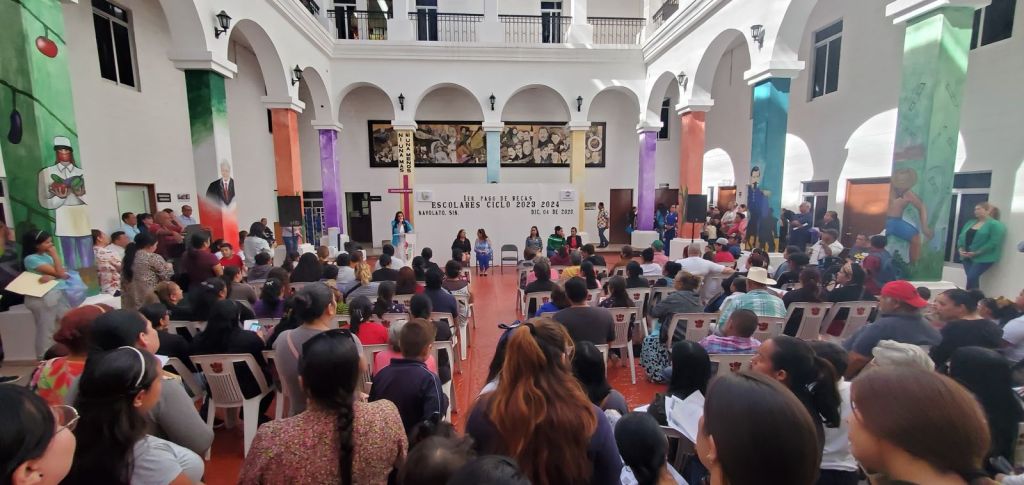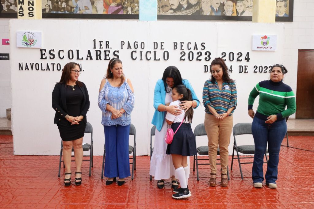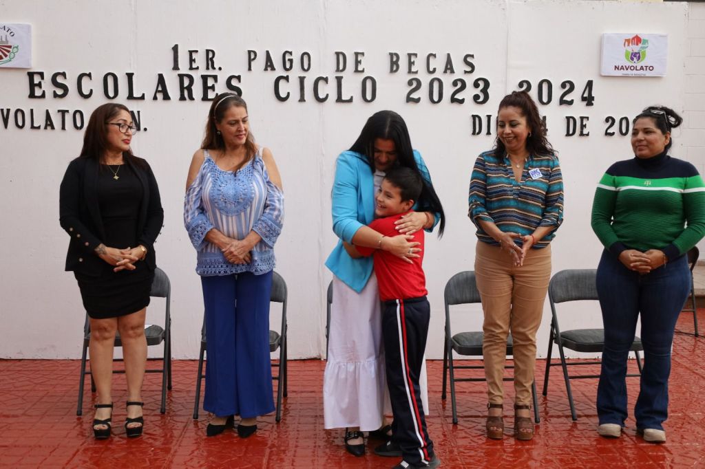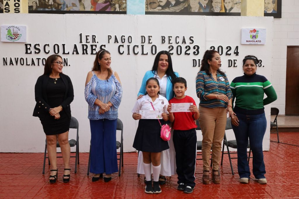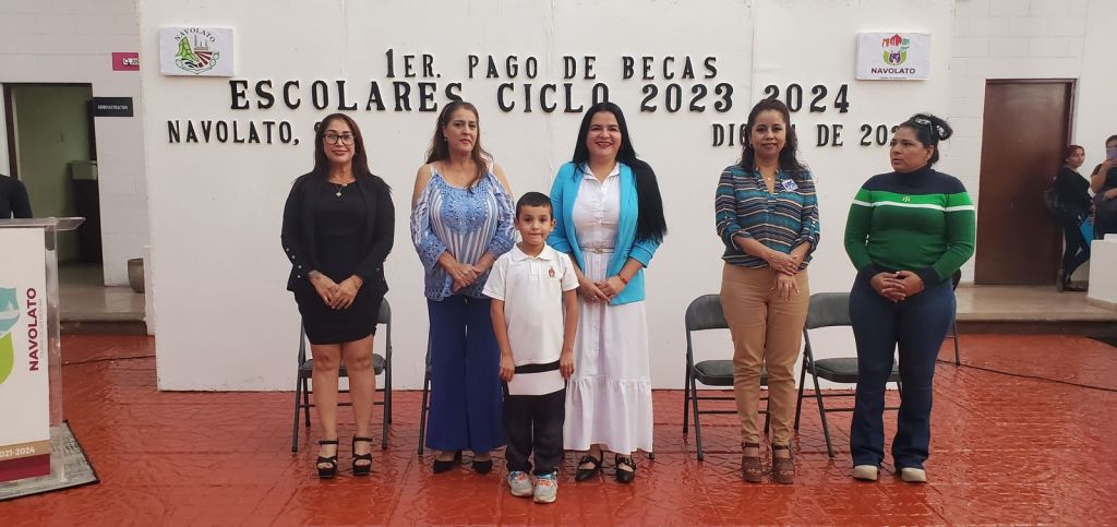 Navolato, Sinaloa, a diciembre de 2023*.- Este lunes en un evento presidido por la alcaldesa Margoth Urrea Pérez, se llevó a cabo el primer pago de becas escolares 2023-2024 a 1,749 alumnos de educación básica, media superior y superior, así como a personas con discapacidad, hijas e hijos de policías caídos, de bomberos y del pentatlón.