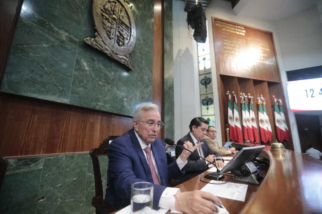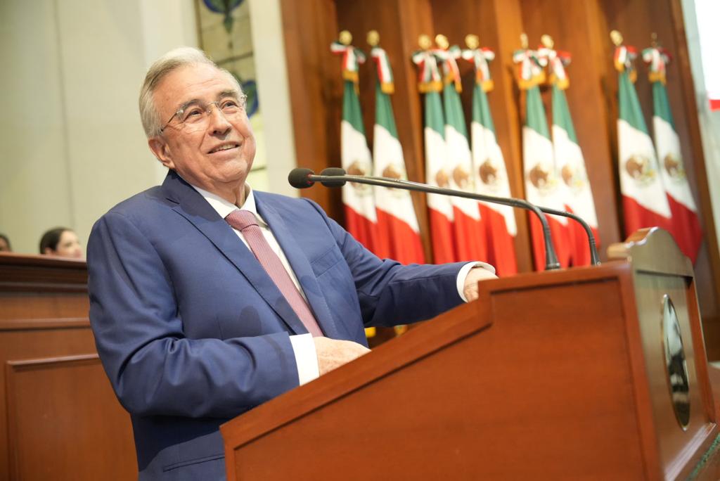 Culiacán, Sinaloa, diciembre del 2023.- El gobernador Rubén Rocha Moya en su comparecencia ante el Congreso del Estado, informó que la economía de Sinaloa bajo su segundo año de administración creció un 3.6% lo que coloca a Sinaloa dentro de los 10 estados con mayor crecimiento económico del País.