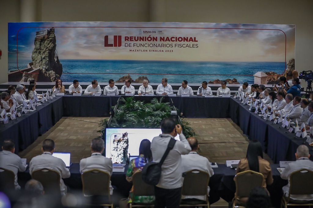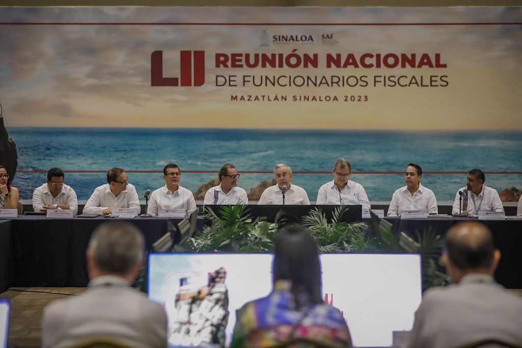 El mandatario estatal inauguró la 52 Reunión Nacional de Funcionarios Fiscales que congregó en Mazatlán a servidores públicos del área de todo el país.