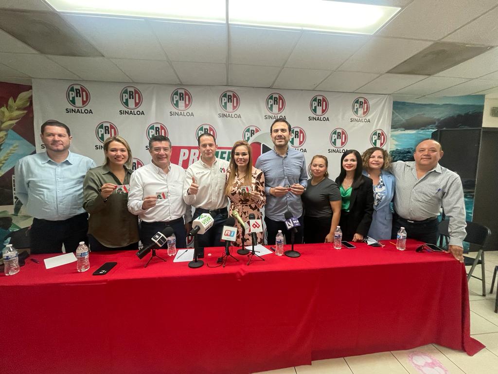 En conferencia de prensa, acompañado de la presidenta del PRI en Sinaloa, Paola Gárate Valenzuela, del secretario general, Bernardino Antelo Esper; del delegado del CEN en el estado, Álvaro Ruelas Echave y de los dirigentes de sectores y organizaciones, CNOP, Érika Sánchez; Movimiento Territorial, Óscar Valdez; Movimiento PRI.Mx, Gladys Obeso; UR, Adelaida Ayón y de la CNC, Miguel Ángel López Miranda.