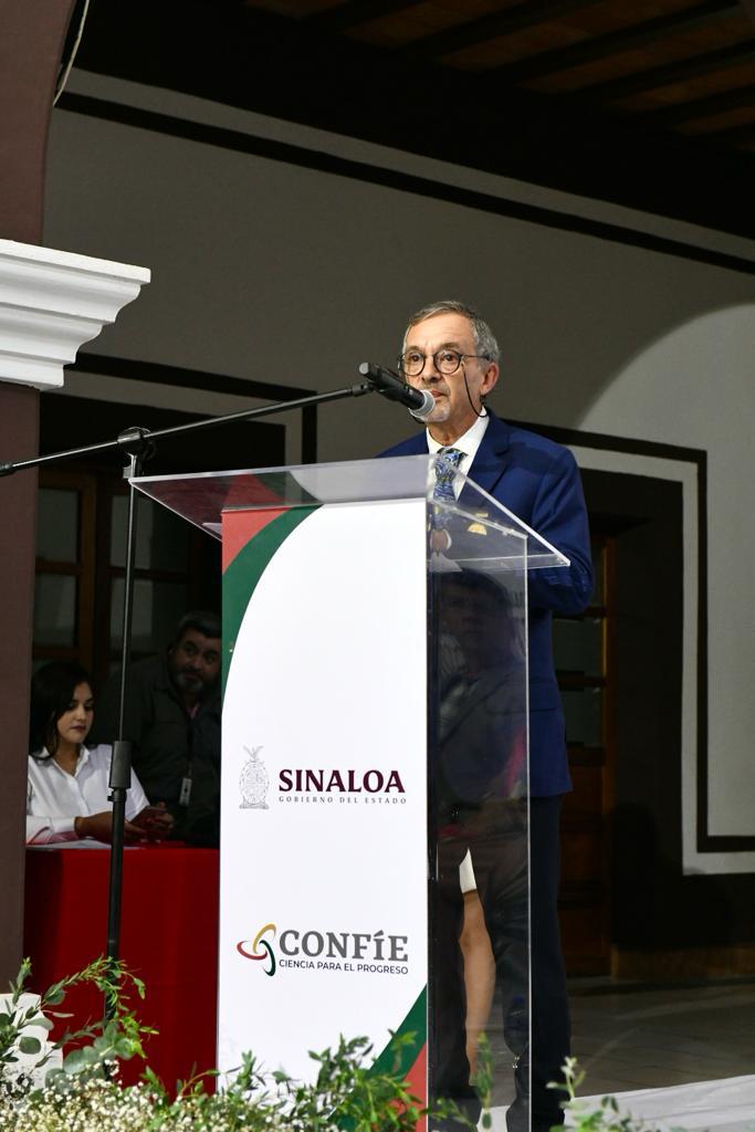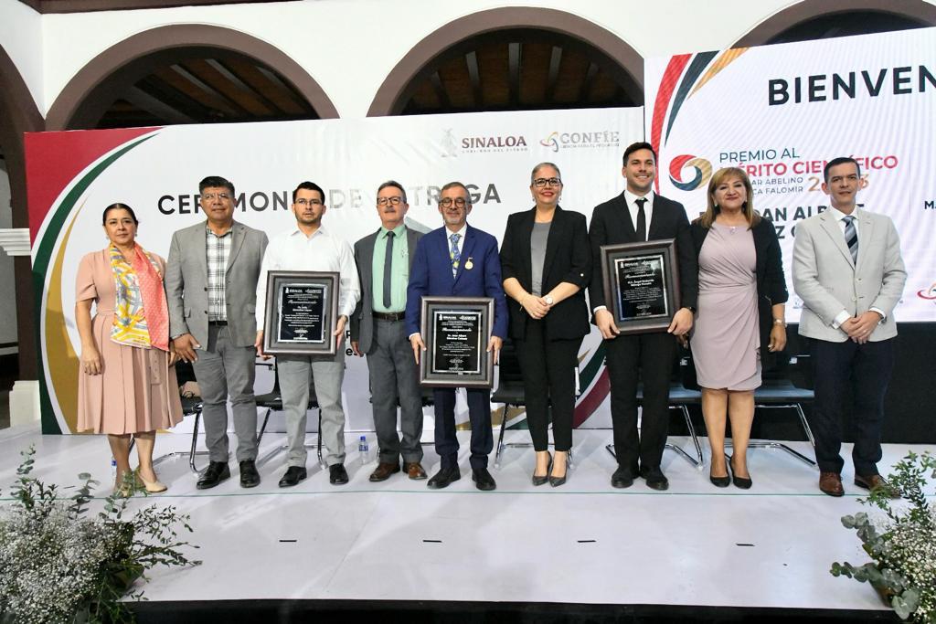 Culiacán, Sin; diciembre de 2023.- El Gobierno de Sinaloa distingue, reconoce y celebra la trayectoria profesional y la excelencia de hombres y mujeres que con sus aportaciones en el campo de la ciencia, la tecnología y la innovación, resultan fundamentales para incrementar la competitividad, el desarrollo económico sustentable y el bienestar social en nuestro Estado, expresó la secretaria Graciela Domínguez Nava al entregar el Premio al Mérito Científico “Dr. César Abelino Ordorica Falomir” y el Premio Eustaquio Buelna a la Mejor Tesis de Posgrado, otorgados por el CONFIE.