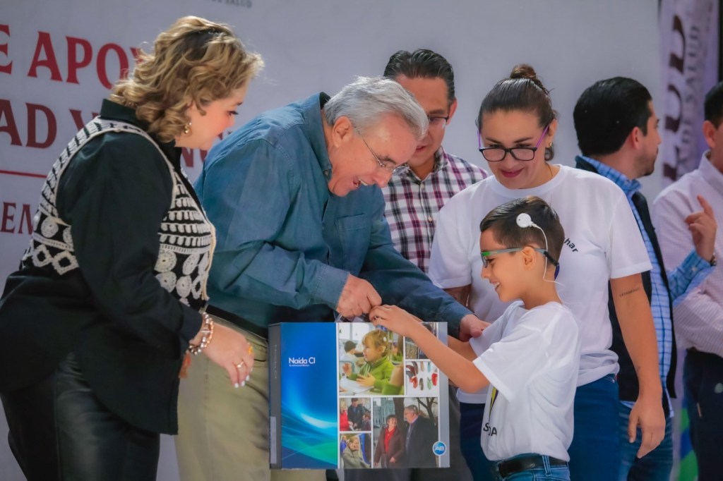 El Ejecutivo Estatal agradeció en su mensaje al director general de la Administración del Patrimonio de la Beneficencia Pública Adrián Benítez Ruiz por traer este nuevo equipo coclear para las niñas y niños de Sinaloa que ahora tienen una cara feliz y llena de esperanza.