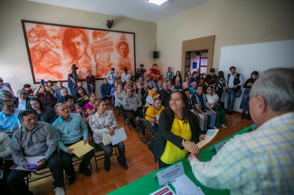 Culiacán, Sinaloa, diciembre del 2023.- El gobernador Rubén Rocha Moya, acompañado por el director General de COBAES Santiago Inzunza Cázarez hizo entrega de 46 gratificaciones por jubilación para el personal de esta institución quienes dedicaron décadas de servicio en pro a la juventud, la educación y un mejor desarrollo para el futuro del estado.