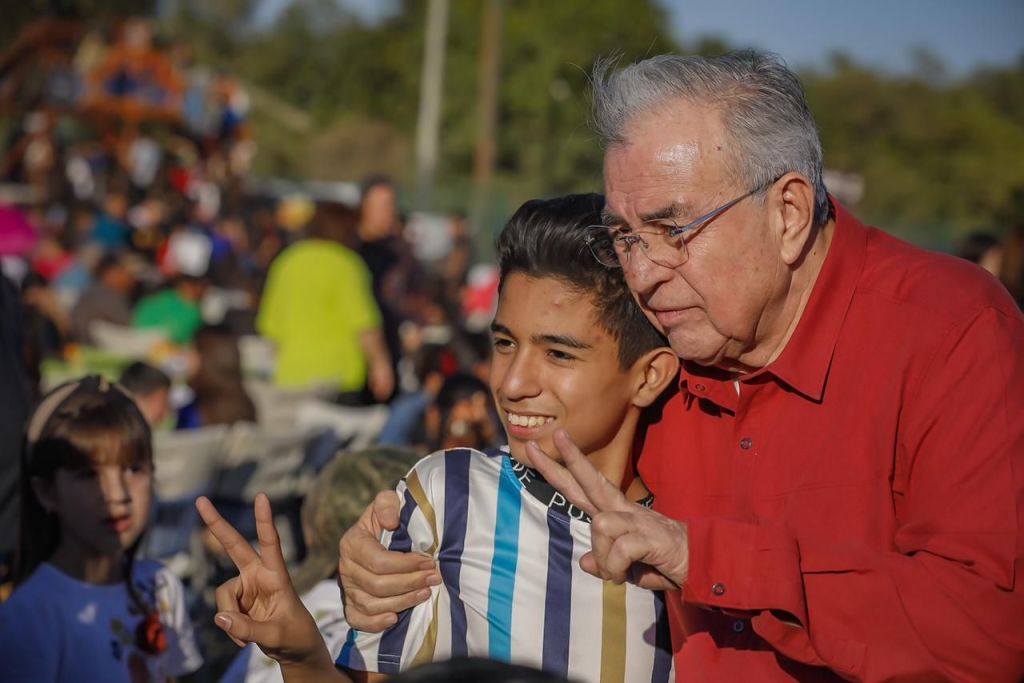 Mocorito, Sinaloa, a Diciembre de 2023.- Risas, gritos de algarabía y muchas sonrisas de niñas y niños al recibir sus regalos fueron el resultado de la Posada de Navidad 2023, organizada anualmente por el Sistema DIF Estatal que preside Eneyda Rocha Ruiz y que este año tuvieron a los Campos Deportivos de la Sindicatura de Pericos como sede de la feria que enmarca este amplio festejo encabezado por el Gobernador Rubén Rocha Moya, quien estuvo acompañado por todo su gabinete de primer nivel y de María Elizalde Ruelas, Alcaldesa de Mocorito.