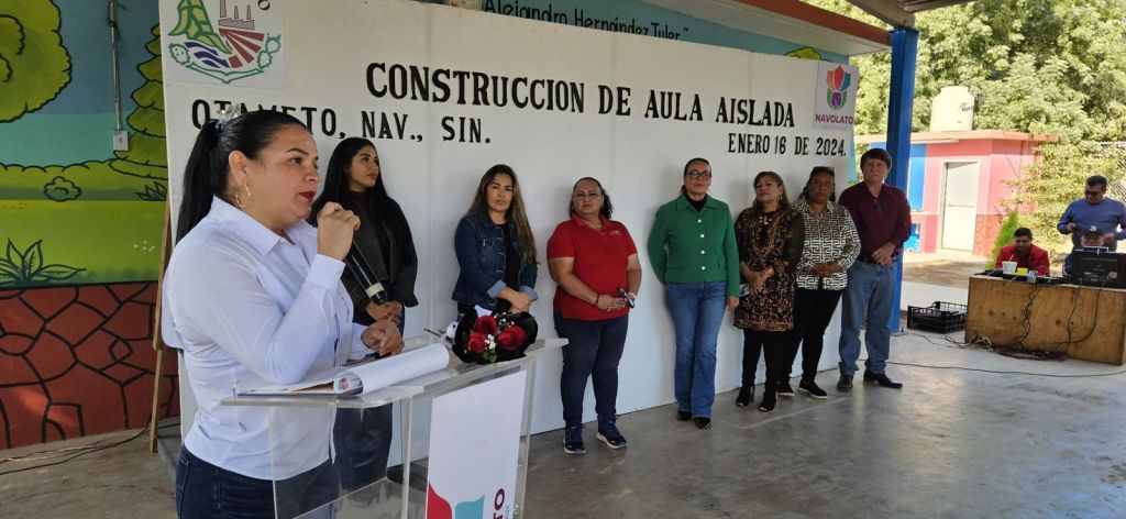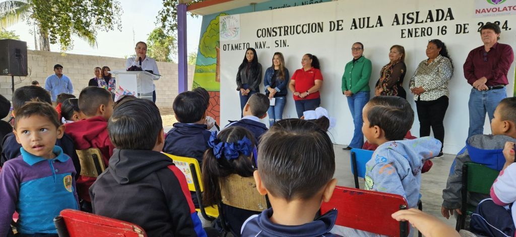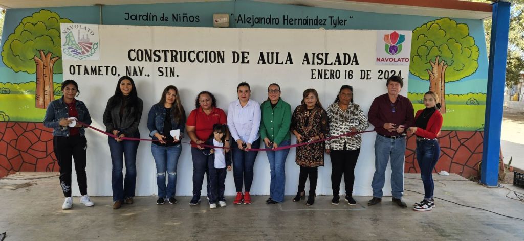La alcaldesa de Navolato llevó a cabo la entrega de la construcción de aula aislada en el Jardín de Niños “Alejandro Hernández Tyler” de la comunidad de Otameto, sindicatura de Bachimeto, cumpliendo así con la petición realizada en Cabildo Abierto, lo cual puso a bailar a las niñas y niños de la felicidad.