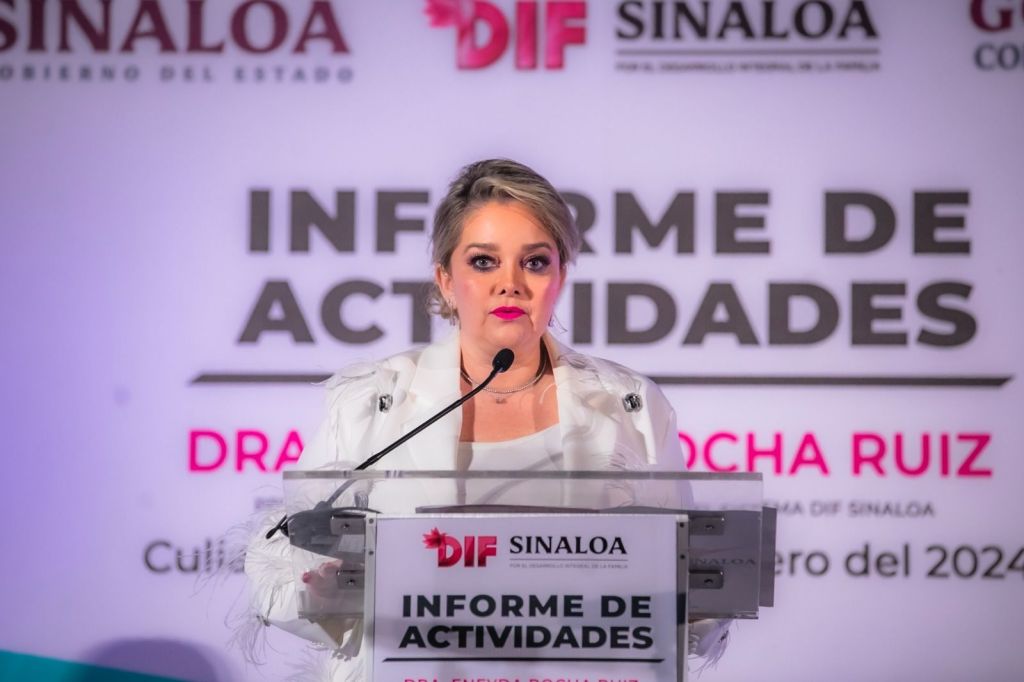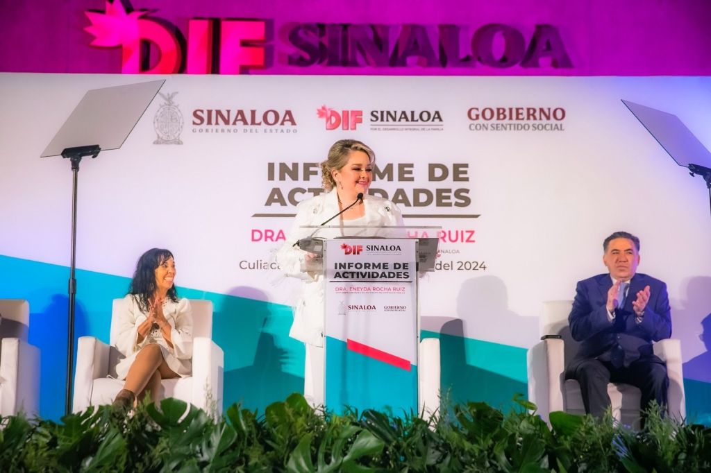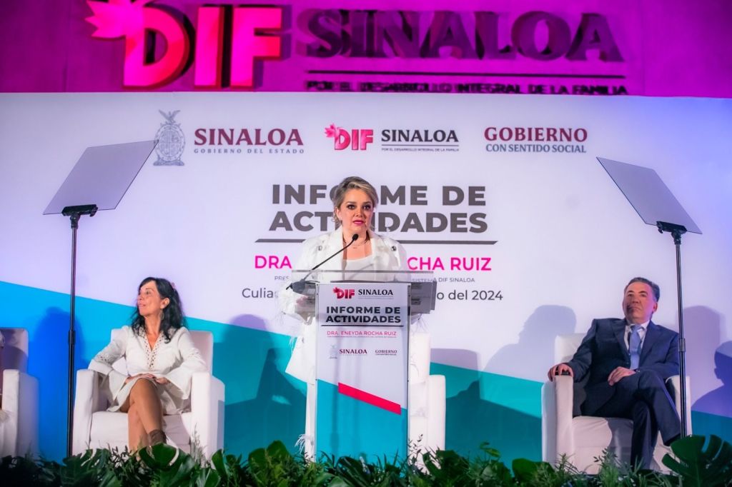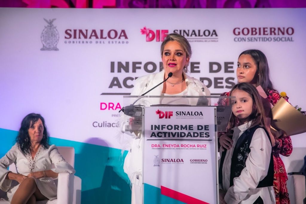 Como parte de su informe, la presidenta del DIF, Eneyda Rocha Ruiz dijo que el señor gobernador Rubén Rocha Moya la invitó a un gobierno con estricto criterio de transparencia y rendición de cuentas.
