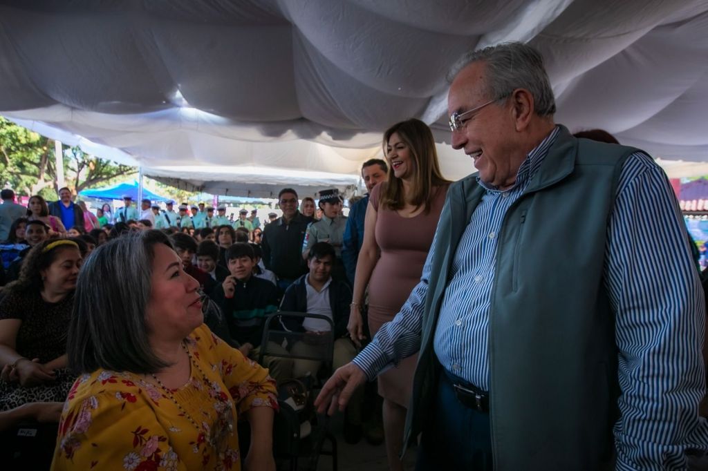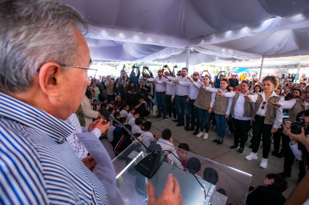 El gobernador Rocha estuvo acompañado por la titular del Sistema Nacional DIF Nuria Fernández Espresate, la presidenta del Sistema DIF Estatal Eneyda Rocha Ruiz, la subsecretaria de Educación Media Superior de la SEP Nora Ruvalcaba Gámez, el secretario general de gobierno Enrique Inzunza Cázarez, el alcalde de Culiacán Juan de Dios Gámez Mendívil, la secretaria de Educación Pública y Cultura Graciela Domínguez Nava, la secretaria de las Mujeres María Teresa Guerra Ochoa, el delegado estatal de Programas para el Bienestar en Sinaloa Omar López Campos.