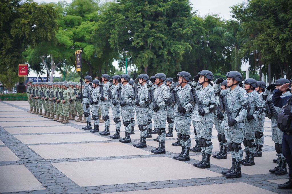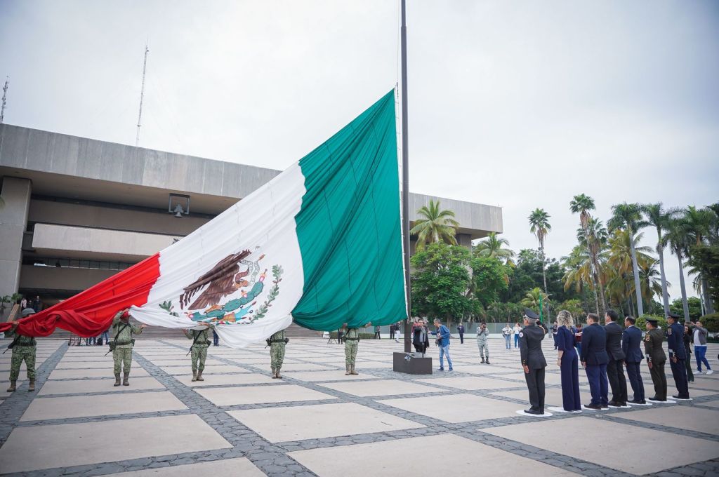 Culiacán, Sinaloa, 10 de febrero de 2024.- Autoridades civiles y militares conmemoraron el 109 aniversario de la Fuerza Aérea Mexicana con el izamiento de bandera a toda asta y con Honores de Ordenanza en la plaza cívica del Palacio de Gobierno.