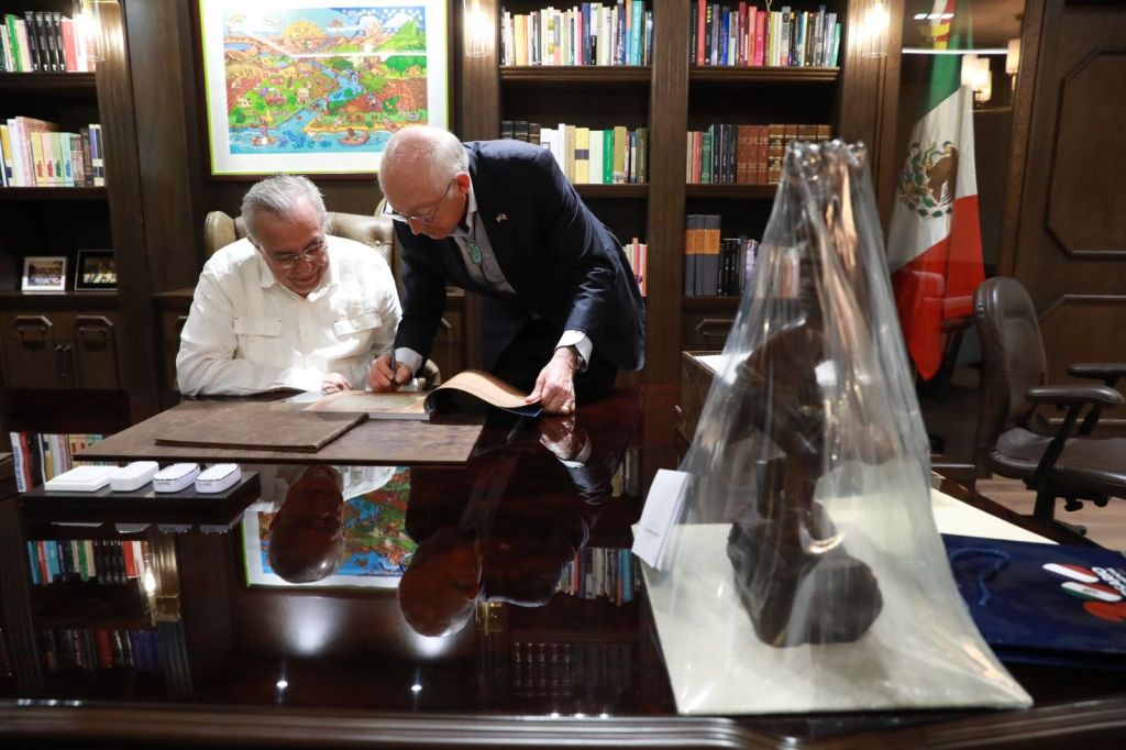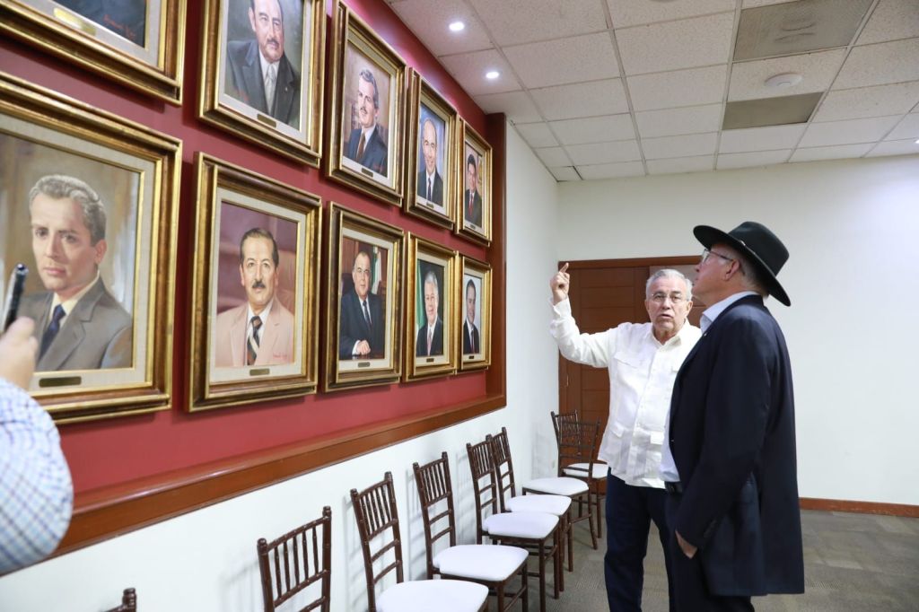 Luego de concluir la amplia y muy cordial reunión de carácter privado con los diplomáticos estadounidenses, el Gobernador Rocha Moya hizo entrega de un simbólico presente de la cultura Yoreme de centenaria tradición en Sinaloa.