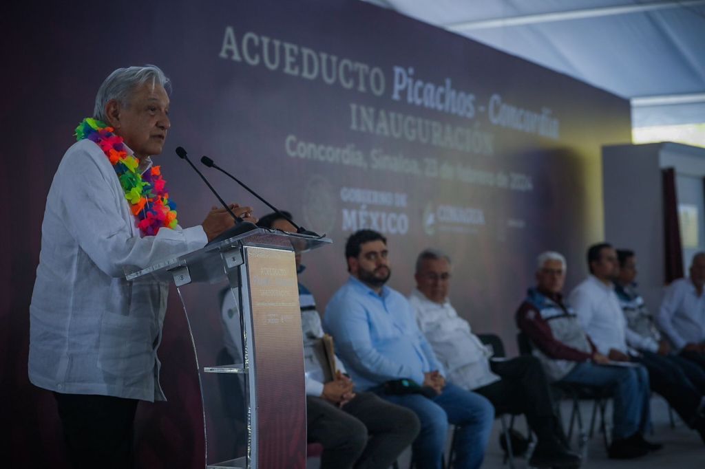 “Estamos inaugurando esta obra que como lo mencionó el gobernador Rubén Rocha es al mismo tiempo un acto solemne de justicia, porque se vivía en la contradicción, en la paradoja de que tenían la presa pero Concordia no contaba con agua”, dijo.