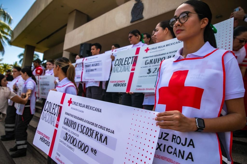 Culiacán, Sinaloa, a 26 de febrero de 2024.- Con una meta de 45 millones de pesos, el gobernador Rubén Rocha Moya puso en marcha de manera formal la Colecta Nacional de la Cruz Roja en Sinaloa, que inició el pasado 21 de febrero y que se mantendrá hasta el 31 de mayo, con el lema “Todos somos Héroes”, y en cuyo acto inaugural se recaudaron cerca de un millón de pesos donados por diversas empresas de Culiacán.
