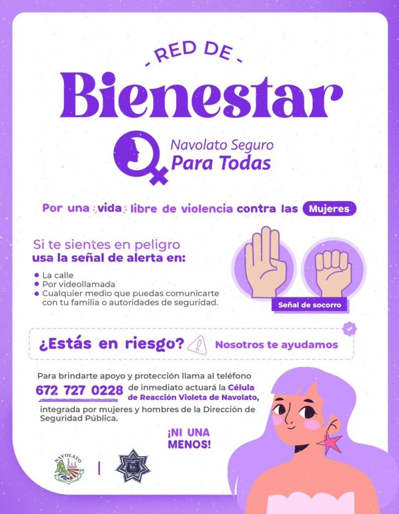 Para atender la problemática el Ayuntamiento de Navolato cuenta con la Célula de Reacción Violeta, integrada por mujeres y hombres de la Dirección de Seguridad Pública y Transito Municipal, quienes están capacitados para atender temas de violencia de género.