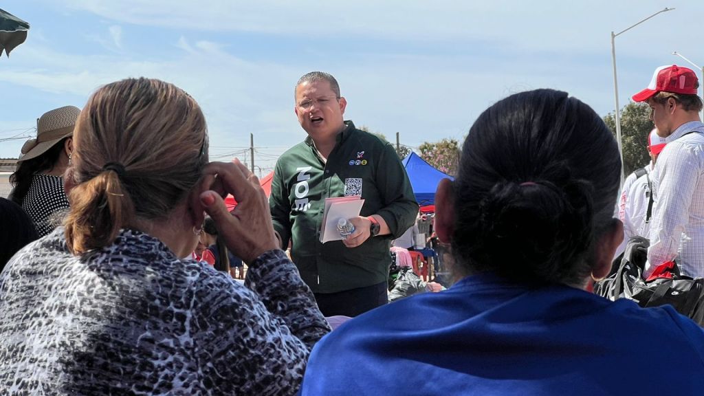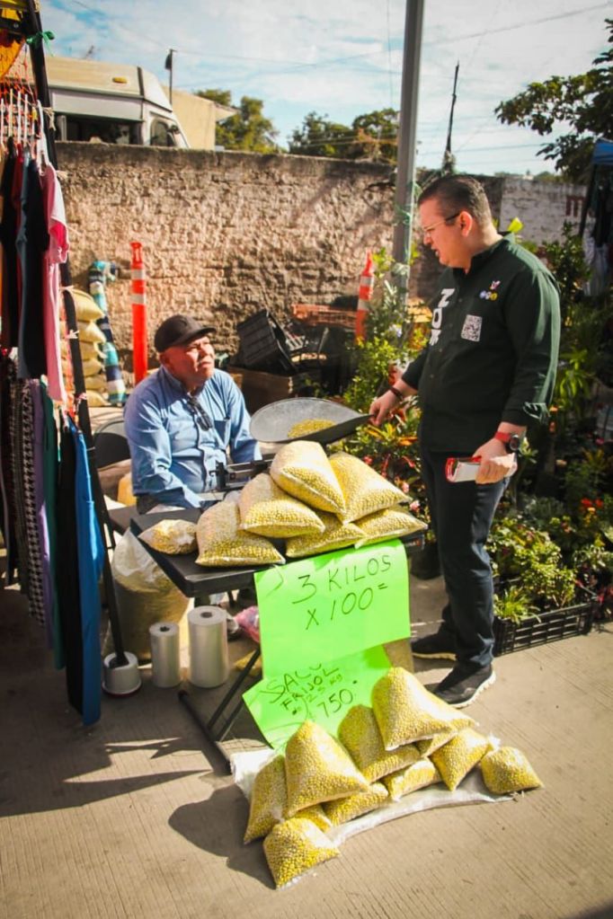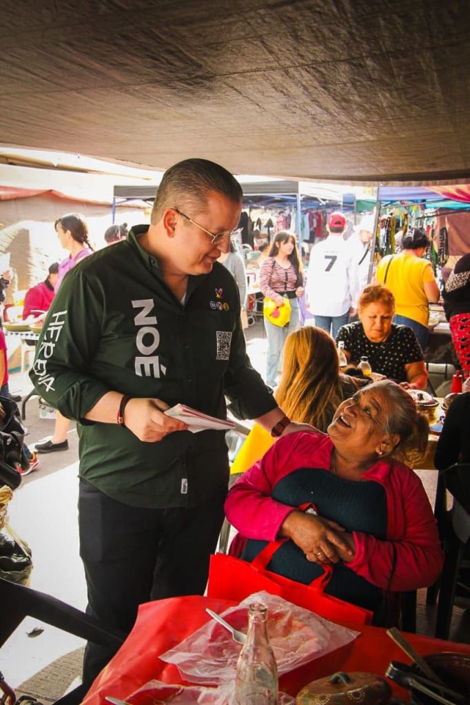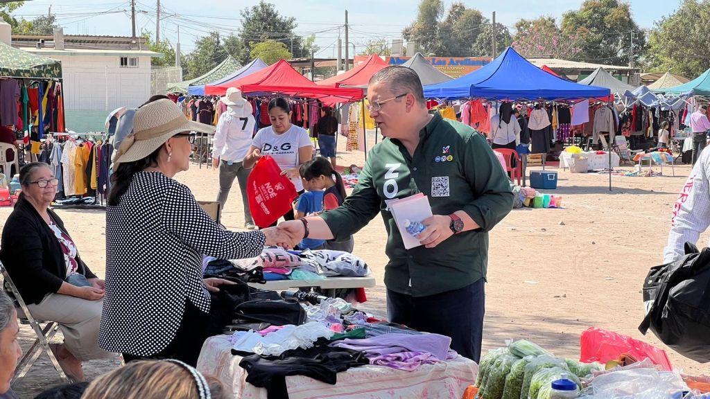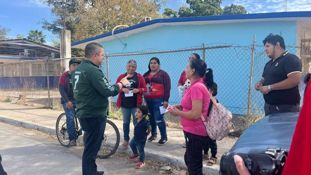 El candidato de la Alianza Fuerza y Corazón por México, que encabeza Xóchitl Galvez a la presidencia de la república, inicio su jornada de proselitismo de este sábado en el tianguis de la colonia Lombardo Toledano, realizó recorrido casa por casa en la colonia Loma de Rodriguera y saludo a automovilistas y transeúntes en el crucero de la avenida Revolución y carretera a Sanalona.