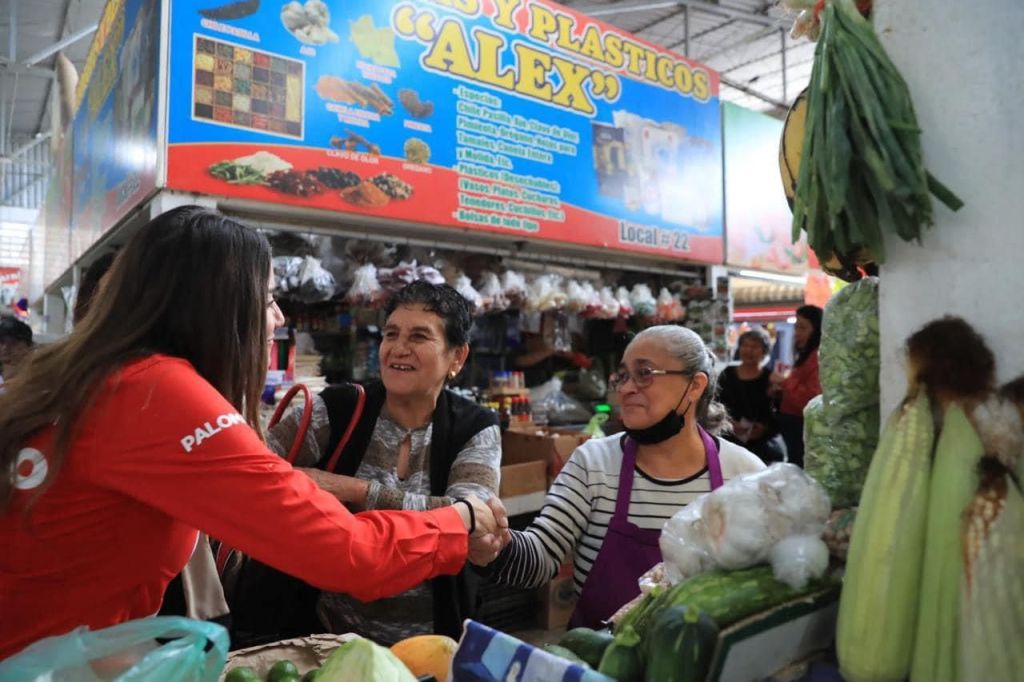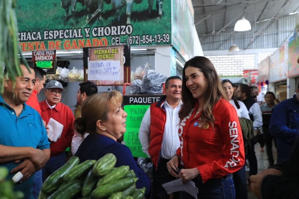 La joven candidata declaró sentirse muy contenta por el gran recibimiento que le han dado las y los sinaloenses; en su recorrido por el mercado Hidalgo en Navolato, “les pido su confianza, no los vamos a defraudar y vamos a trabajar para recuperar los programas de beneficio social para sectores productivos”.