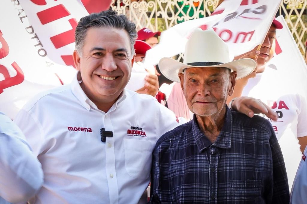 Enrique Inzunza, candidato al Senado por Morena manifestó estar contento en Juan José Ríos, destacando la travesía cívica que están realizando por pueblos y colonias. Hizo mención especial a Don José Román, habitante de “Che Ríos”, y resaltó su visión humanista, comparándola con la visión de Morena.