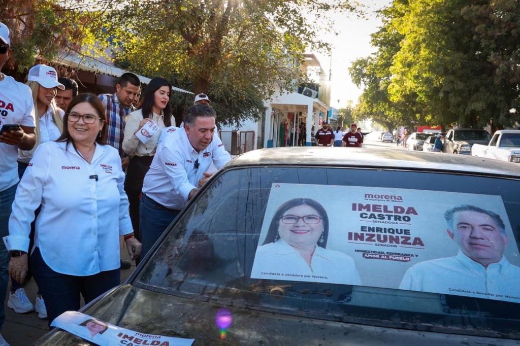 Pericos, Mocorito; 16 de marzo 2024.- Imelda Castro y Enrique Inzunza candidatos al Senado de la República por Morena sostuvieron gira de campaña en Pericos, donde saludaron a vecinos de la sindicatura en la «Plazuela Gabriel G. Villaverde». El candidato Enrique Inzunza recordó que Pericos forma parte de su biografía, ya que fue el primer pueblo grande que conoció.