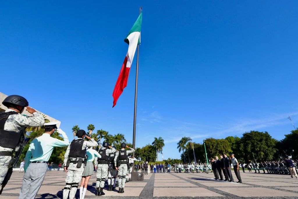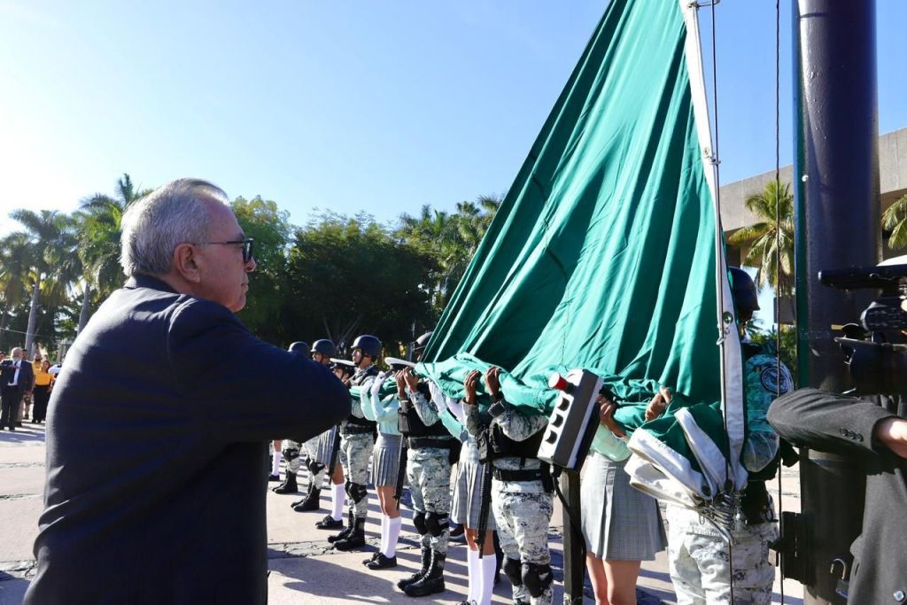 La ceremonia tuvo lugar en la explanada de Palacio de Gobierno, donde el gobernador Rocha primeramente izó la bandera nacional a toda hasta y enseguida montó guardia de honor ante el monumento al general Lázaro Cárdenas, en compañía de los representantes de los demás Poderes del Estado, del Ayuntamiento de Culiacán y representantes militares.