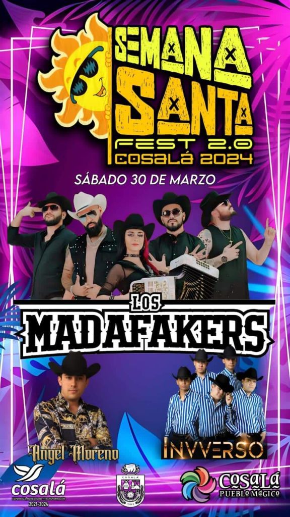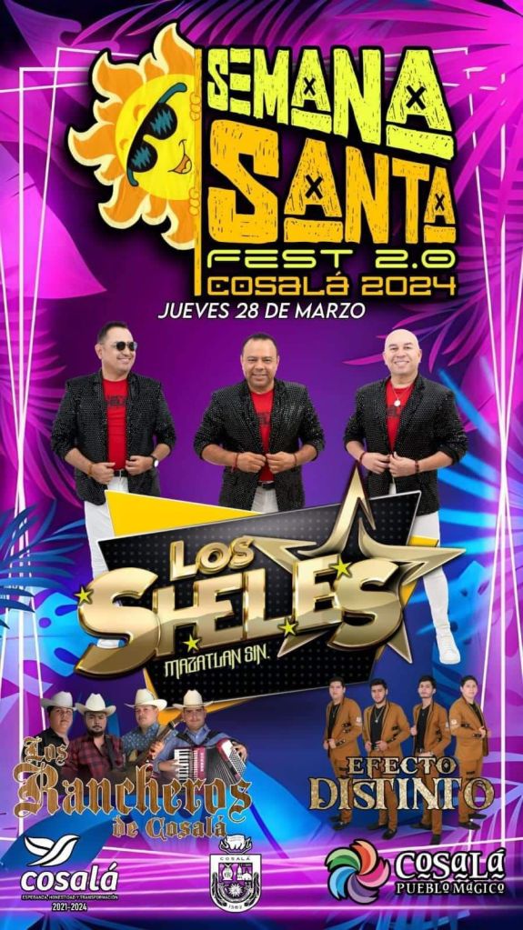 Cosalá, Sinaloa, 20 de marzo de 2024.- Del jueves 28 y hasta el sábado 30 de marzo, Cosalá vivirá su tradicional evento Semana Santa Fest 2.0 Cosalá 2024, que consiste en la presentación de varios grupos musicales y solistas del género regional mexicano, quienes ofrecerán horas de alegría y diversión a los asistentes a la plazuela de este Pueblo Mágico.