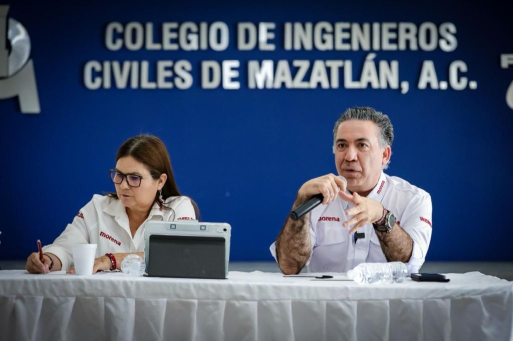 Mazatlán; 23 de marzo de 2024.- Los candidatos al senado por la República Imelda Castro y Enrique Inzunza en su travesía por puerto de Mazatlán, atendieron la invitación del Colegio de Ingenieros Civiles de Mazatlán A.C presidido por Juan Andrés Barrón Ochoa.