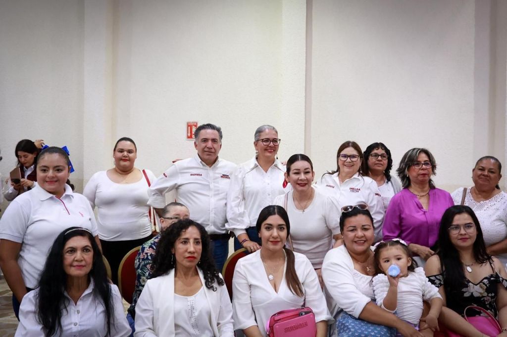 Imelda Castro y Enrique Inzunza dialogan con mujeres del estado.