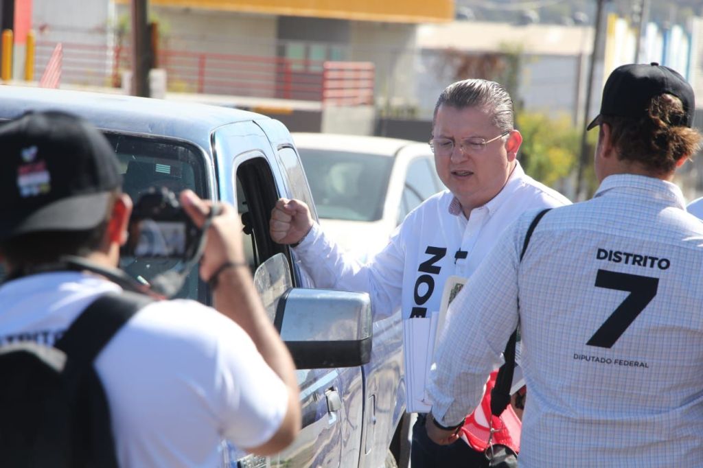 De igual forma saludó a automovilistas y transeúntes en el crucero de la calzada Heroico Colegio Militar y bulevar San Ángel y por la tarde hará recorrido casa por casa en las colonias 5 de febrero y 21 de marzo.