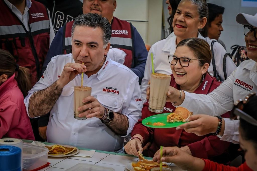 En un recorrido por el Mercado municipal de Guasave, sostuvieron un acercamiento directo con vecinos y locatarios del lugar. Ahí los candidatos de la coalición ‘Sigamos Haciendo Historia’ explicaron sus propuestas a mujeres y hombres trabajadores, adultos mayores y jóvenes que pasaban. Dentro del Mercado los aspirantes a la Camara Alta hicieron una parada obligada en el puesto de Don Chayo, reconocido por sus tortitas, donde el candidato Enrique Inzunza saludó expresó: «Podemos decir que venimos a Guasave porque vinimos a visitar a Don Chayo».