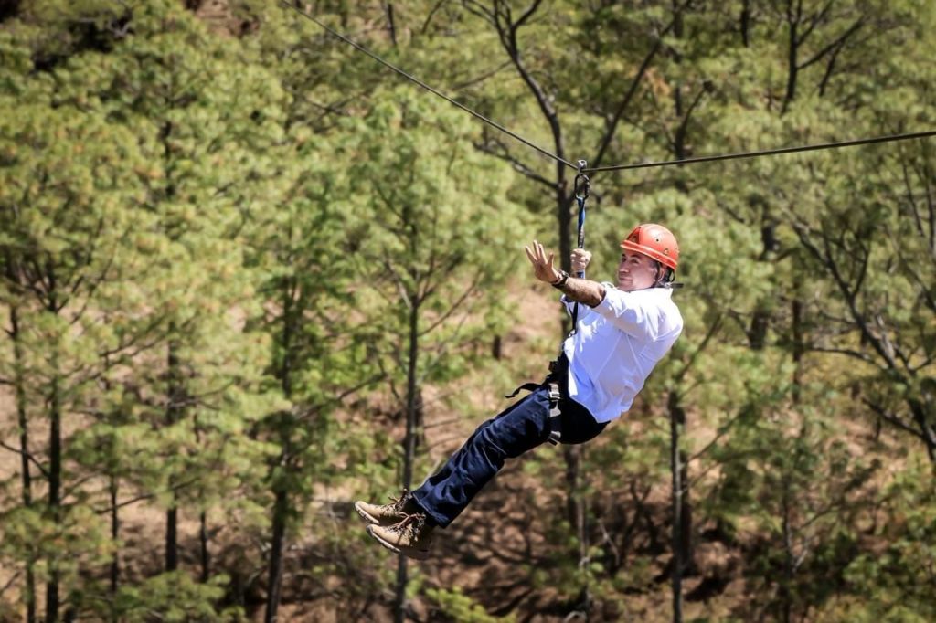 Enrique Inzunza, disfrutó de la adrenalina al lanzarse en la tirolesa teniendo como fondo la cascada de La Campana y los paisajes de la sierra; entre los presentes, turistas de Los Mochis coreaban la porra “Se ve, se siente, Enrique Inzunza está presente”; sin titubear el de Batequitas también se atrevió a subir las escaleras del parador fotográfico recién inaugurado, denominado la “Puerta del Cielo”, un lugar muy atractivo para los turistas que visitan esa zona, ahí el candidato tuvo oportunidad de grabar videos y tomarse algunas fotografías teniendo de fondo la Sierra Madre Occidental.
