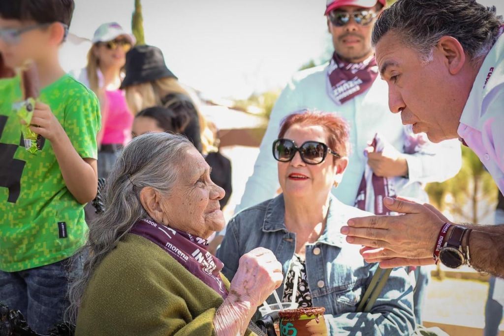 Mujeres y hombres demostraron su aceptación y empatía para con el candidato Enrique Inzunza; “¡Cuenta con nuestros votos, estamos con usted al 100!”, externaron los visitantes locales y foraneos, recibiendo al aspirante con entusiasmo por familias procedentes de Guamúchil, Los Mochis, Guasave y Culiacán. Otros comentaron que desde Estados Unidos elegirán a Claudia Sheinbaum para que los represente, pues confirmaron estar muy contentos con los programas sociales de los que algunos ya son beneficiarios.