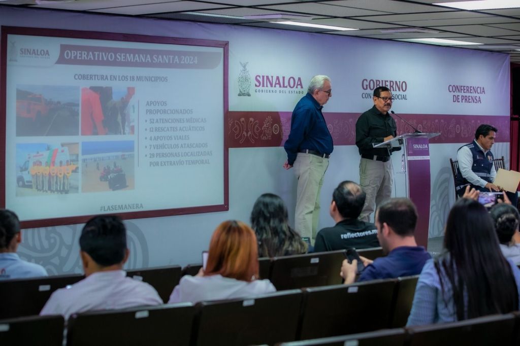 Culiacán, Sinaloa, a 01 de abril de 2024.- Con saldo blanco concluyó el operativo Semana Santa 2024 que brindó cobertura a 191 zonas de resguardo a nivel estatal, con la participación de 11,172 elementos de seguridad, señaló este lunes el Gobernador Rubén Rocha Moya durante su Conferencia Semanera, en la que acompañado por Gerardo Mérida Sánchez, Secretario de Seguridad Pública y Aurelio Roy Navarrete Cuevas, Director del Instituto Estatal de Protección Civil de Sinaloa, brindaron detalles sobre la cobertura en los 18 municipios.