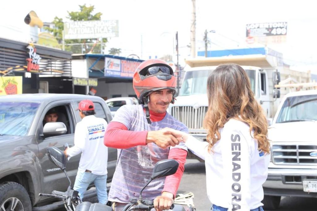 “Si me dan su confianza, les prometo defender al estado con amor, pasión y trabajar todos los días; en nosotros está el cambio, les pido la oportunidad de ser su senadora para poder ir a tribuna y cuidar a Sinaloa”, dijo, al brindar una sonrisa a cada pasajero de los automóviles a los que se acercaba.